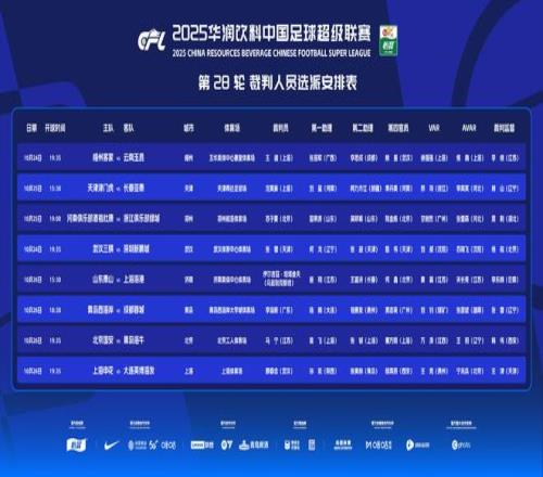 中超第28轮裁判:坦塔舍夫执法山东vs海港,马宁吹国安vs海牛