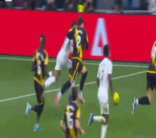 在上半场,维尼修斯的进球帮助皇马以1比0的比分取得领先。第48分钟,姆巴佩突入禁区之后在拉蒂乌的防守下倒地,主裁判并未判罚点球,这让姆巴佩非常不满。随后,视频助理裁判介入判罚,但同样没有做出判罚。