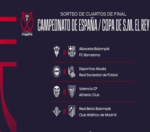 国王杯八强对阵:阿尔瓦塞特vs巴萨,贝蒂斯vs马竞 -